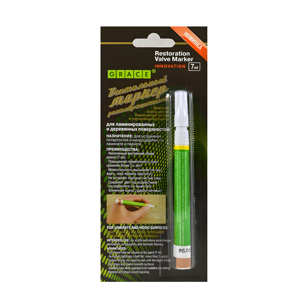 Предназначен для устранения потертостей и мелких царапин, не имеющих углубления, на деревянных, ламинированных и пластиковых поверхностях (мебель, двери, полы, окна и др.), а также изделиях из кожи и кожзаменителя (мебель, одежда, обувь.) Используется для затемнения краев царапин перед нанесением и восстановления текстуры поверхности после заделки повреждения мягким воском (см. восковые реставрационные мелки).