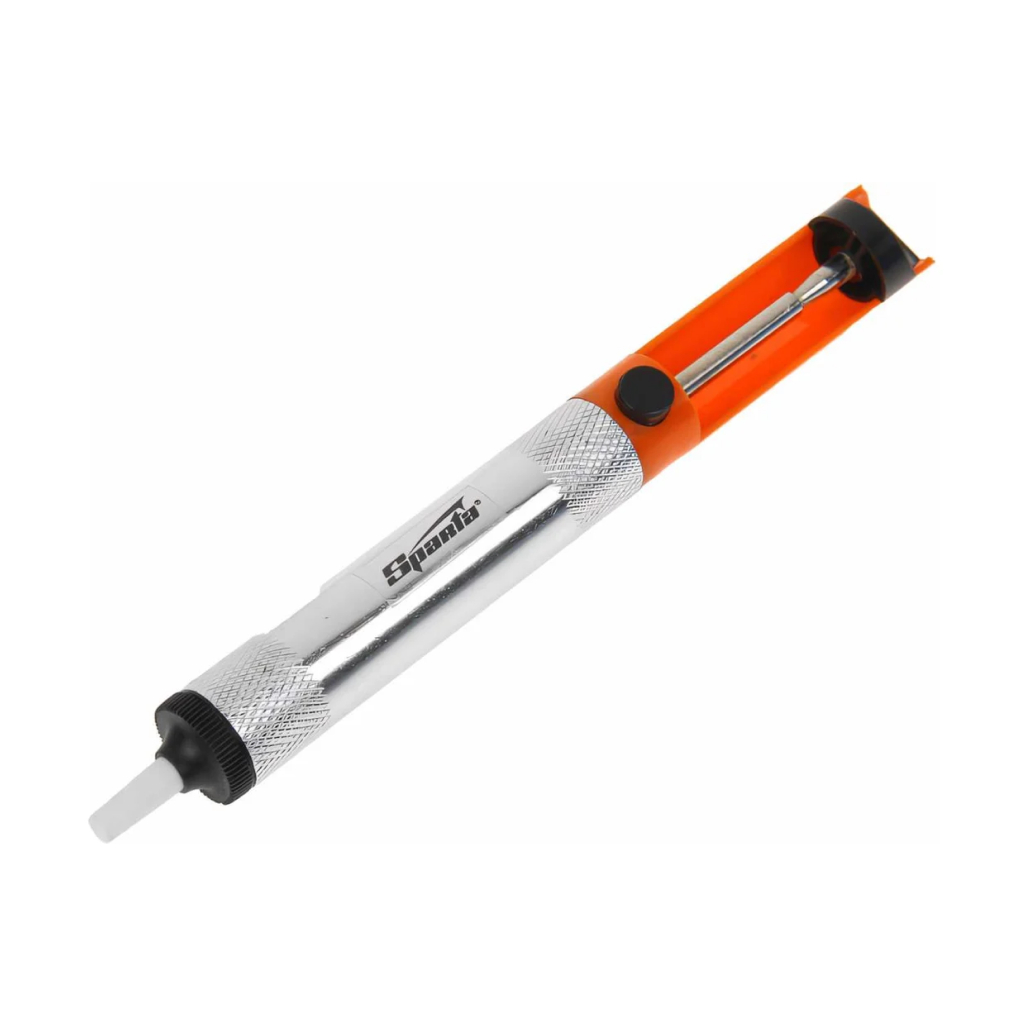 Паяльный металлический оловоотсос Sparta применяется при работе с микросхемами. Он удаляет остатки припоя и позволяет аккуратно извлекать микросхемы без потери их работоспособности. Ручной инструмент имеет простую конструкцию, удобную в эксплуатации, поэтому пригодится профессионалам и неопытным мастерам.