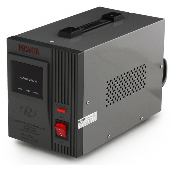 Стабилизатор напряжения РЕСАНТА АСН-2000/1-Ц работает по электрическому принципу преобразования и предназначен для подключения к одной фазе. Входное напряжение может составлять от 140 до 260 В, при этом номинальная мощность прибора составляет 2 кВт. Он отлично справляется с поддержанием работоспособности бытовых устройств и компьютерного оборудования. Стабилизатор напряжения РЕСАНТА АСН-2000/1-Ц изготовлен в корпусе из прочного материала, что гарантирует защиту от повреждений. Охлаждение реализуется при помощи вентиляционных отверстий. Контрастный дисплей, расположенный на передней панели, позволяет визуально контролировать основной показатель сети. Специальные индикаторы сообщат о перегреве и перегрузке. Стабилизатор оснащен специальной ручкой для переноски, к тому же отличается небольшим весом и компактными размерами.