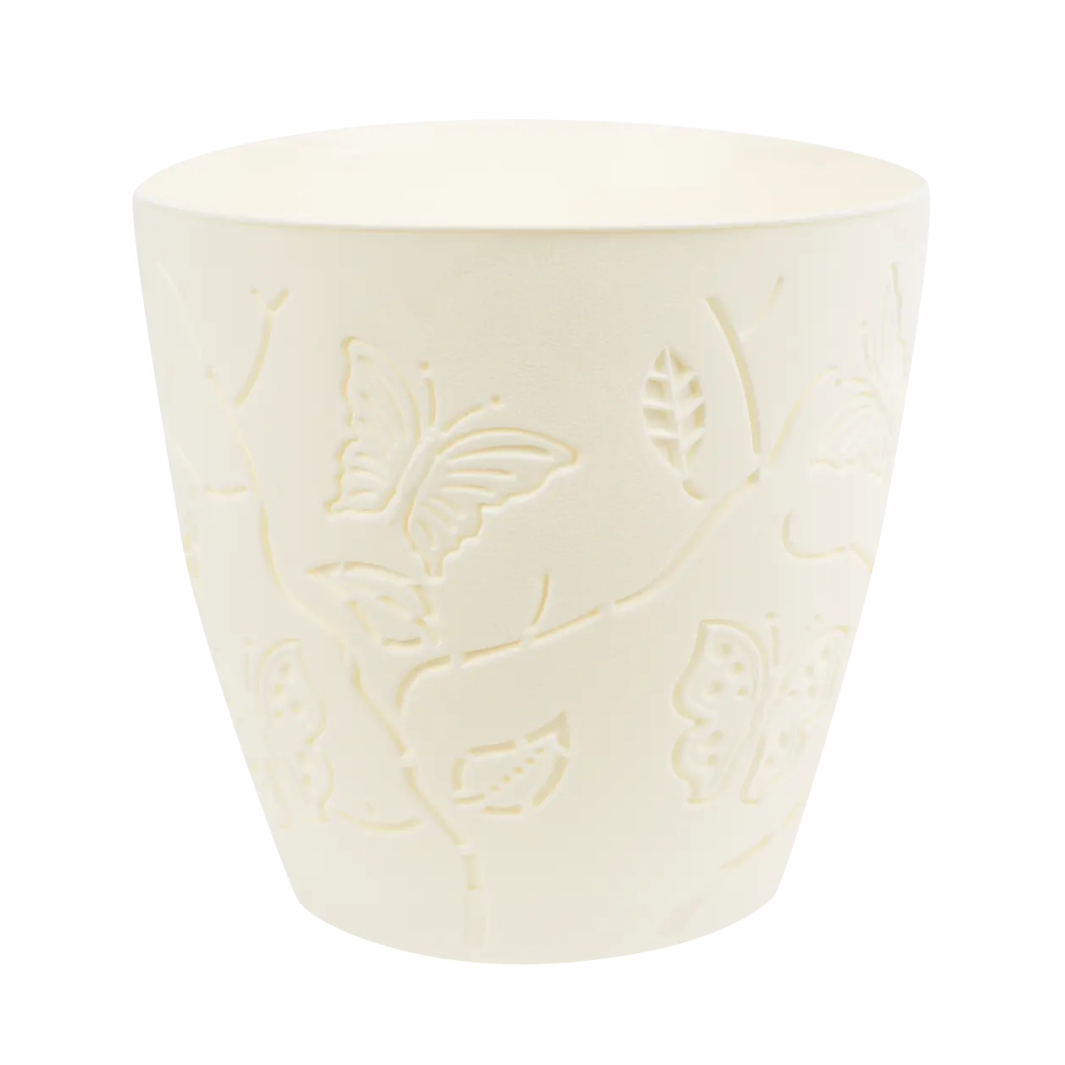 - Внешний красивый горшок - создающий особую атмосферу, сочетает современную форму с оригинальной текстурой поверхности в 3D исполнении и напоминает порхание бабочек. Из-за низкой теплопроводности материала грунт внутри почти не нагревается в жару и медленно остывает на холоде.