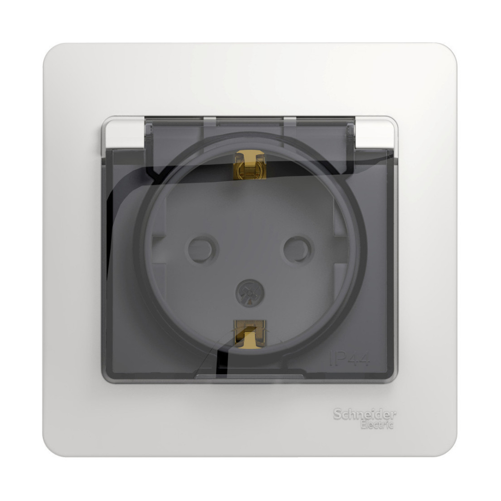 Розетка Schneider Electric Glossa 1-местная с заземлением скрытой установки со шторкой, белая