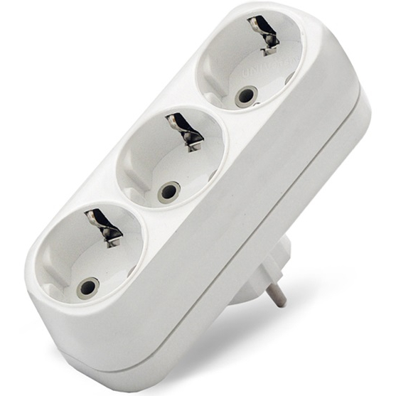 Разветвитель 3 гнезда линейный, белый (земля), Toker
