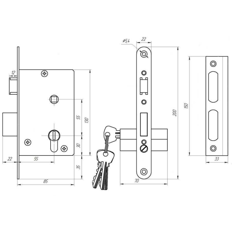 Замок врезной Зенит ЗВ4-3.02 (бронза)