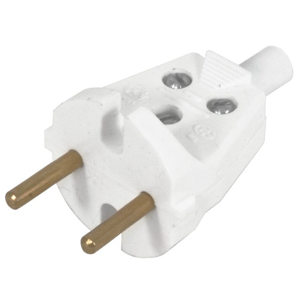 Вилка прямая 6А 250В белая (В6-001)