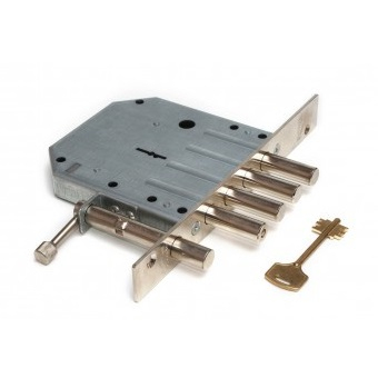 При относительно небольших габаритах, имеет весьма "взрослый" вылет ригеля в 40 мм. Секретность замка обеспечивается шестью сувальдами. Каждая сувальда имеет спиральную возвратную пружину, в результате чего замок обладает мягкой работой при повороте ключа.