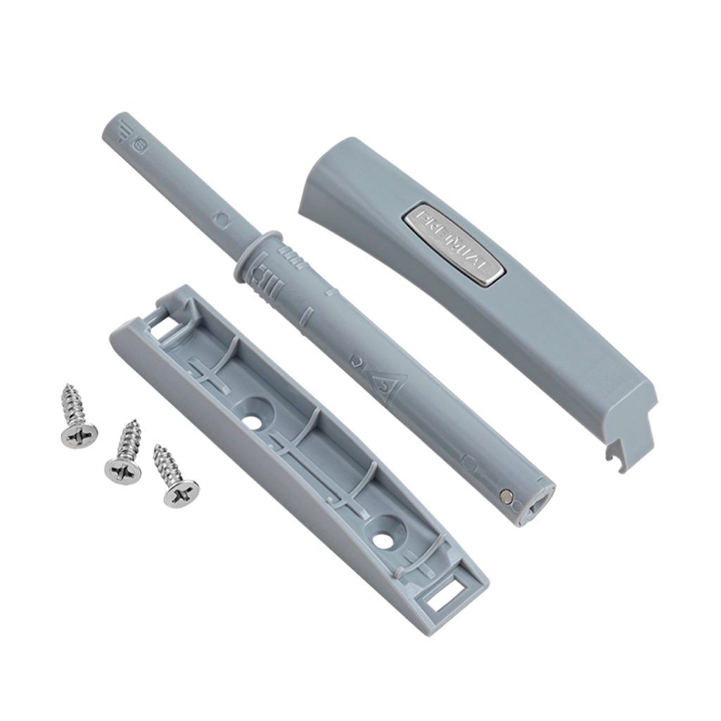 Толкатель с резиновым наконечником под фасады без ручек, устанавливается с петлями без пружин или с пружинами обратного действия. Позволяет оттолкнуть фасад на 35-40 мм для дальнейшего открытия.