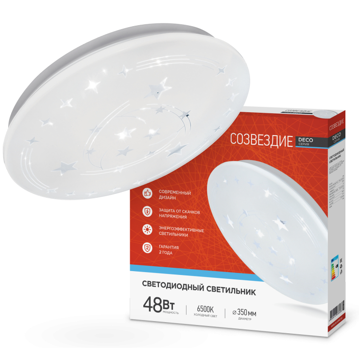 Светодиодные светильники Созвездие серии Deco предназначены для внутреннего освещения жилых помещений, подъездов и сферы ЖКХ, офисных и административных учреждений, магазинов, а также холлов, коридоров, лестничных пролётов, подсобок и других помещений вспомогательного назначения.