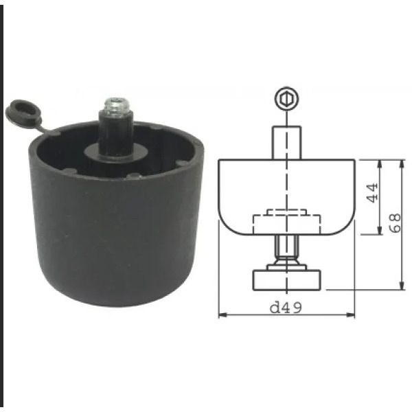 Опора мебельная регулируемая диаметром 50 мм и высотой 44 мм представляет собой элемент крепежа, используемый для установки мебели и оборудования на пол или другие поверхности. Изделие имеет возможность регулировки высоты до 68мм благодаря встроенному механизму, позволяющему точно подобрать уровень опоры под конкретные условия эксплуатации. Применяется преимущественно в конструкции корпусной мебели, стеллажей, кухонных гарнитуров, офисных столов и другой аналогичной продукции.
