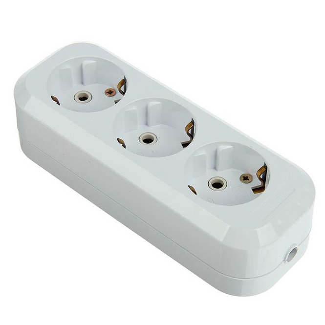Колодка 3 гнезда с заземлением, белая, UNIVersal