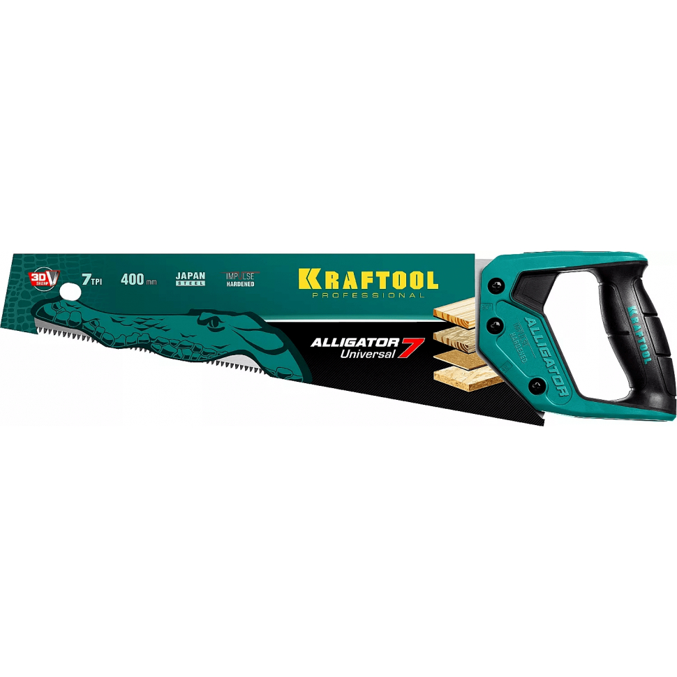 Ножовка универсальная Kraftool Alligator Universal 7 предназначена для продольной и поперечной распиловки древесины различных пород средних и мелких размеров, ДСП. Ножовка профессиональная универсальная для быстрого и качественного выполнения работ.