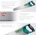 Двухкомпонентная ручка специальной конструкции обеспечивает надежный хват инструмента во время работы. Зубья закалены и имеют 3D заточку и остаются острыми даже после интенсивной эксплуатации ножовки.