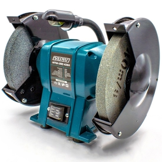 Точильно-шлифовальная машина Варяг МТШ-200/420Л предназначена для заточки режущего инструмента, используемого для работы на металлорежущих станках (резцы, сверла), для заточки лезвий ножей, топоров, ножниц, также применяется для снятия фасок и заусенцев, приданию деталям определенной формы за счет вращения абразивного круга (камня), в качестве привода используется асинхронный двигатель.