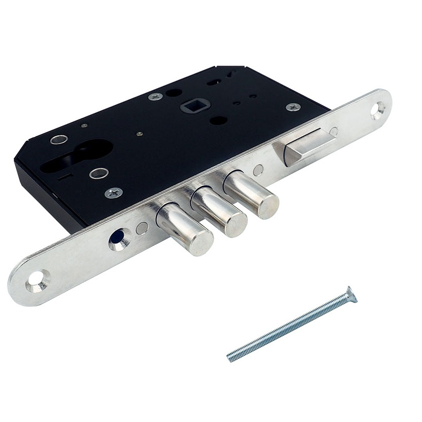 Замок имеет одно направление запирания — тремя стальными ригелями диаметром 12 мм, которые выдвигаются из корпуса замка на 24 мм. Запирание происходит на два оборота. Замок имеет защёлку, поэтому может быть установлен в дверь в качестве основного запирающего устройства. Рекомендован для дверей различного назначения — как металлических, так и деревянных.