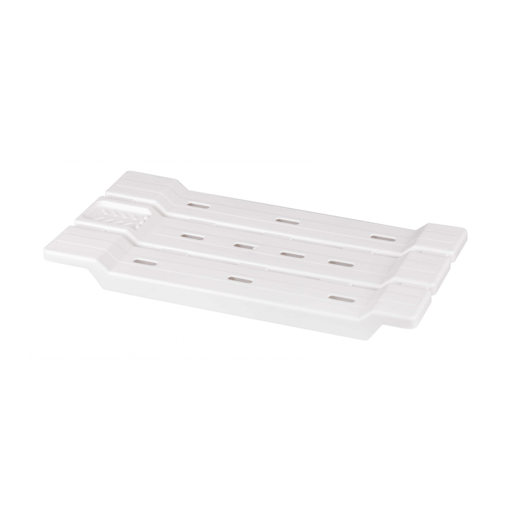 Полка для ванной (сиденье) изготовлена и прочного пластика. Сиденье дополнит функционал ванной и станет удобным аксессуаром при купании для людей, кому в силу своего возраста и здоровья сложно принимать водные процедуры стоя. Сиденье подходит к стандартной ванне. Благодаря конструкции, сиденье не скользит, не царапает покрытие. На одном из краев полки предусмотрено место для мыла. Допустимая нагрузка до 100 кг. Такую полку можно использовать как подставку для таза при купании детей.