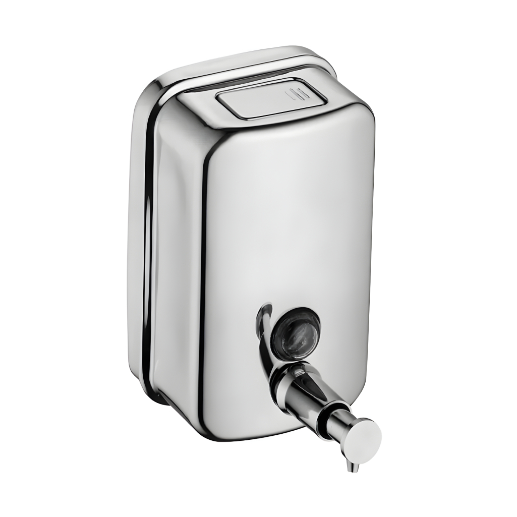 Дозатор для жидкого мыла Potato Р405-8 — это настенный диспенсер с объёмом 0,8 литра. Он имеет глянцевый металлический корпус.
