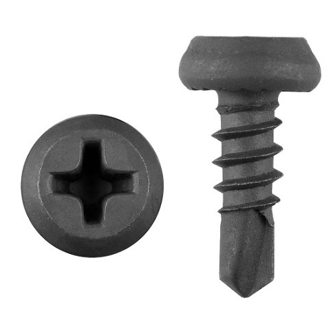 Саморез используется для крепления листов металла толщиной до 2 мм без предварительного сверления. Имеет полуцилиндрическую (усеченый конус) головку, крестообразный шлиц Phillips №2, наконечник - сверло, частую резьбу.