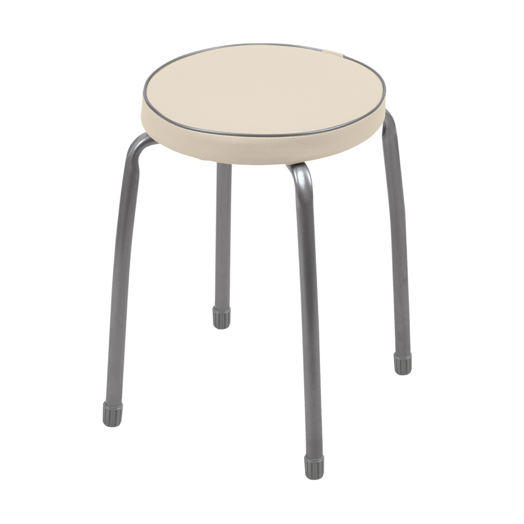 Табурет на четырёх опорах с мягким сиденьем из винилискожи. Материал сиденья устойчивый к истиранию и лёгкий в чистке.