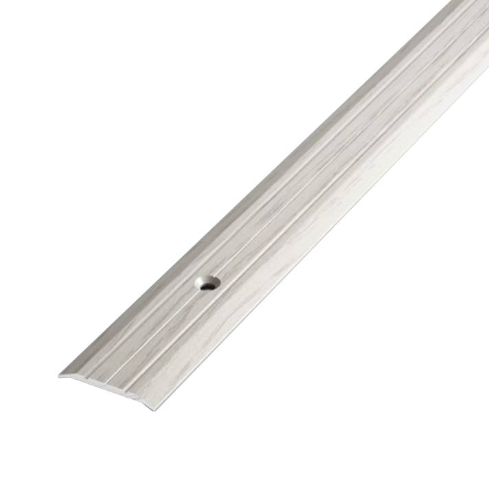 Порог закрытого монтажа, после установки профиля не видны шляпки саморезов, удобен в установке, гладкая поверхность, не подвергается окислению и имеет обширную цветовую гамму. Каждый профиль поставляется в индивидуальной упаковке, оснащенной пластиковым европодвесом, в комплекте с саморезами и дюбелями.