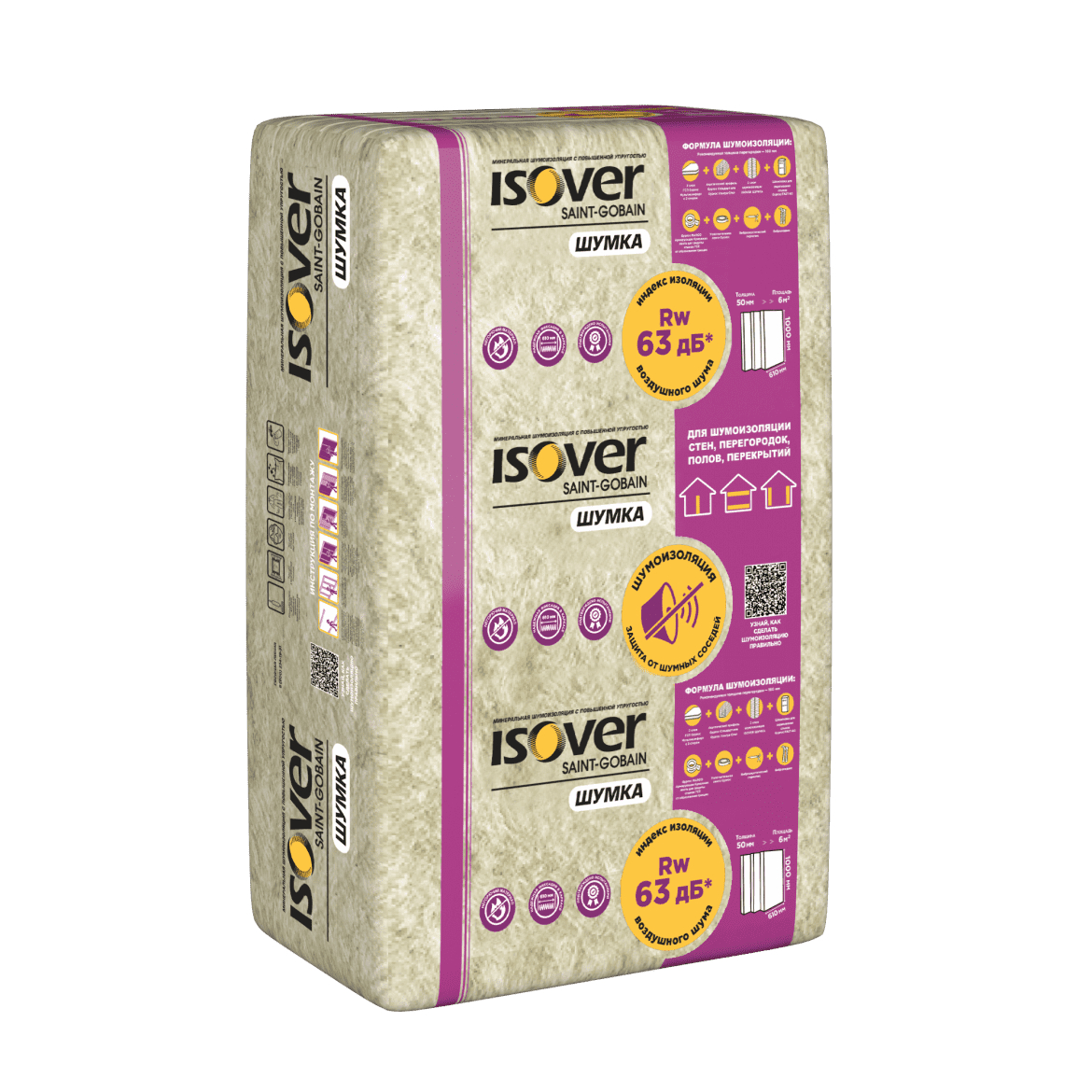 Isover Шумка — профессиональная шумоизоляция в плитах с повышенной упругостью, основная составляющая акустического решения от ISOVER и Gyproc, подтвержденного акустическими испытаниями. Эффективно защищает от шума в составе перегородок, стен и других конструкций квартир и частных домов.
