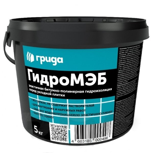 Мастика гидроизоляционная ГидроМЭБ, 5 кг используется для нанесения на основания из гипса или гипсокартона, перед укладкой керамической плитки, а также изоляции помещений, подверженных повышенному воздействию влаги. После высыхания образуется устойчивый к влаге, пару и температурным колебаниям слой.