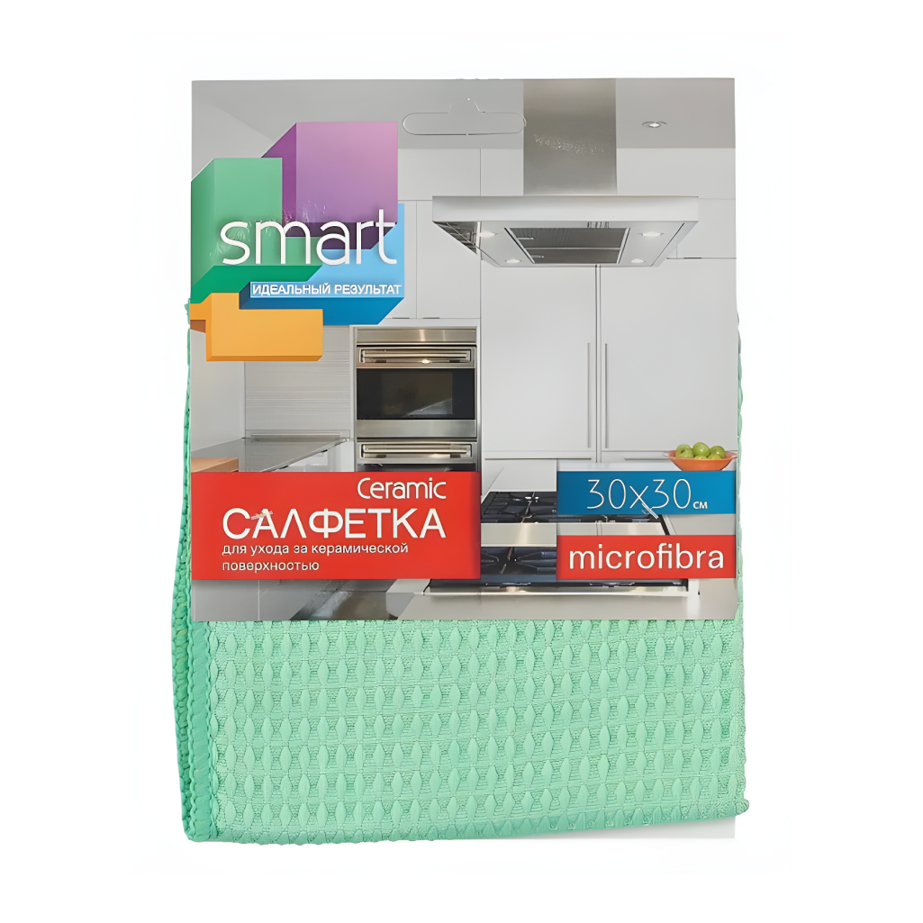 Салфетка Smart "CERAMIC" для ухода за керамической поверхностью с инновационной "вафельной " структурой - гарантия блеска и чистоты. Удобная салфетка для полировки кухонных принадлежностей из керамики, фаянса, фарфора, хрусталя, нержавеющей стали, зеркальных поверхностей. Деликатный уход - не оставляет ворсинок, следов и разводов. Быстро и эффективно чистит и полирует поверхность - удаляет пятна жира, следы от воды, отпечатки пальцев. Отлично впитывает влагу и вытирает насухо. Долгий срок службы. Не требует использования бытовой химии - достаточно обычной воды.