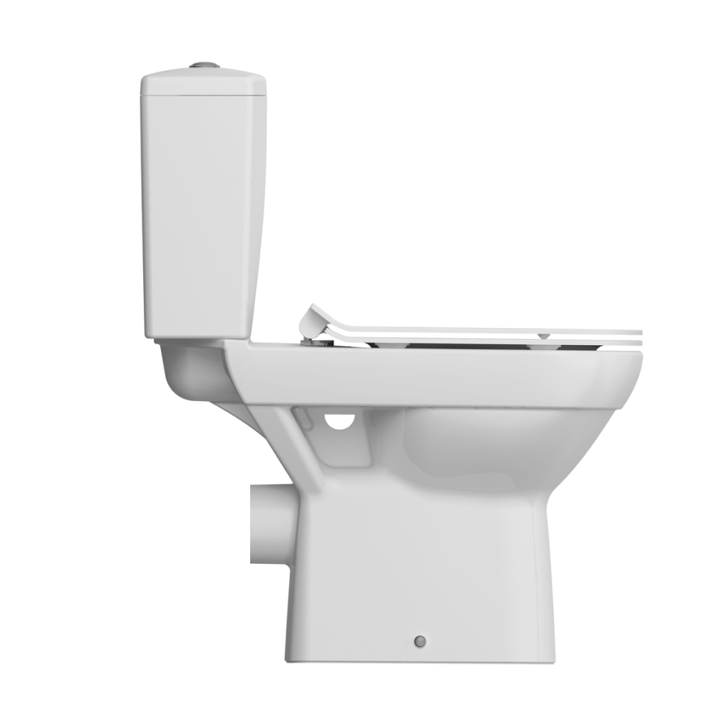 Безободковый напольный унитаз-компакт с ультратонким, антибактериальным сиденьем с плавным закрыванием и легкосъемным механизмом. Двухуровневая арматура с механизмом смыва OLI 3/5л.