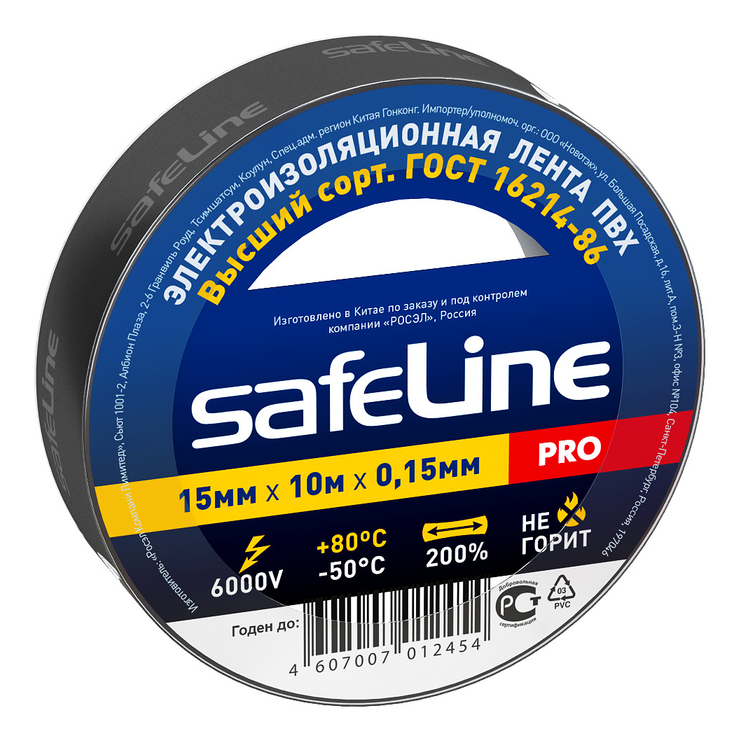 Изолента 15 мм черная, Safeline (10 м)