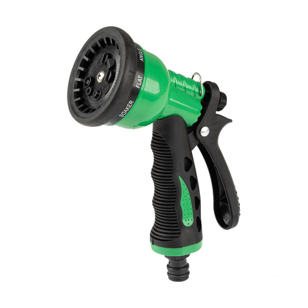 Пистолет-наконечник с регулятором расхода воды отлично лежит в руке благодаря встроенным мягким пластиковым компонентам. Функция жесткой струи подходит для очистки, а функция мелкодисперсного распыления идеально подходит для хрупких растений.