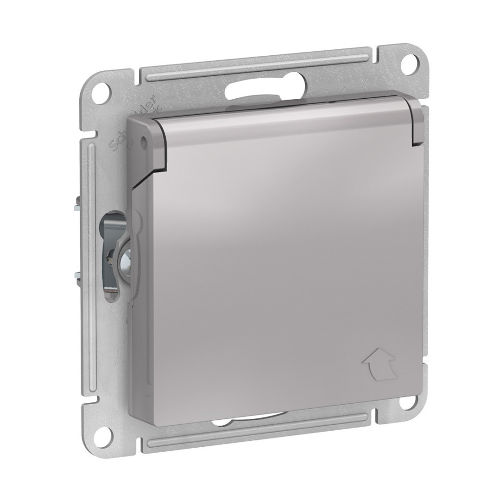Розетка Schneider Electric AtlasDesign 1-местная с/з скрытой установки без рамки, алюминий с крышкой (ATN000346)
