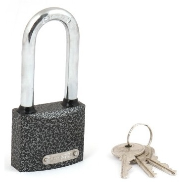 Висячий замок имеет чугунный корпус с порошковым антикоррозийным покрытием и удлиненной закаленной стальной дужкой. Места стыка дужки и замка защищены от попадания воды резиновыми кольцами.