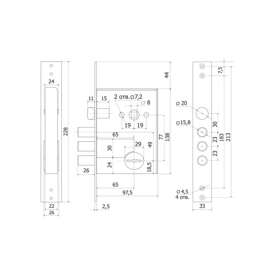 | Удаление ключевого отверстия (Backset),мм | 65 |