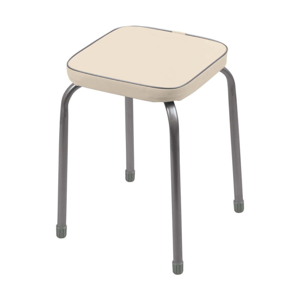 Табурет на четырёх опорах с мягким сиденьем из винилискожи. Материал сиденья устойчивый к истиранию и лёгкий в чистке.