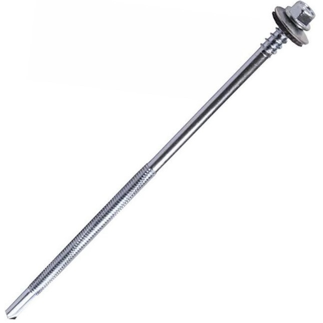 Саморез используется для крепления слоистых плит (сэндвич-панелей) к стальным несущим конструкциям. Имеет шестигранную головку с шайбой и резиновой прокладкой EPDM, наконечник - сверло.