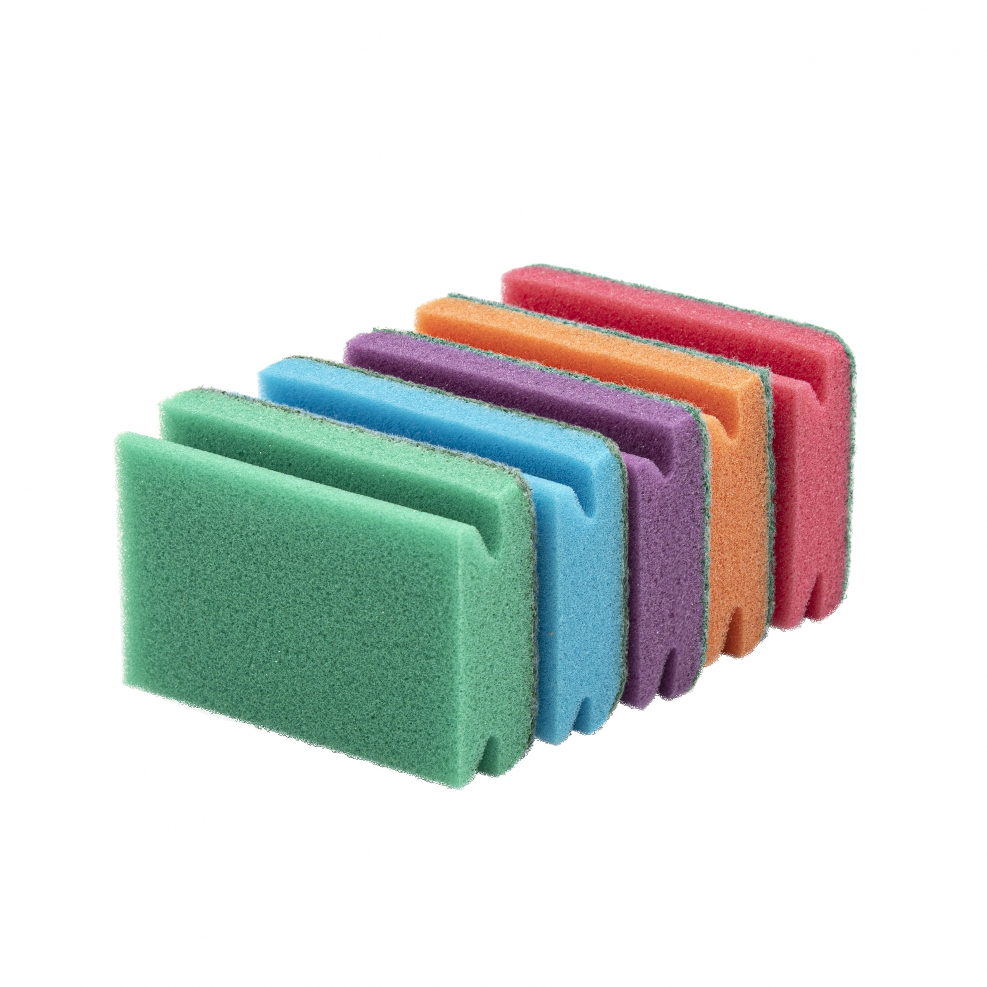 Губки для мытья посуды выполнены в форме профиля, прекрасно справляются как с обычными загрязнениями, так и с пригоревшими остатками пищи, не повреждая даже такие деликатные поверхности, как эмаль и тефлон. Губки не деформируются, легко промываются, а после длительного срока эксплуатации абразивный слой не отслаивается от поролоновой части губки.