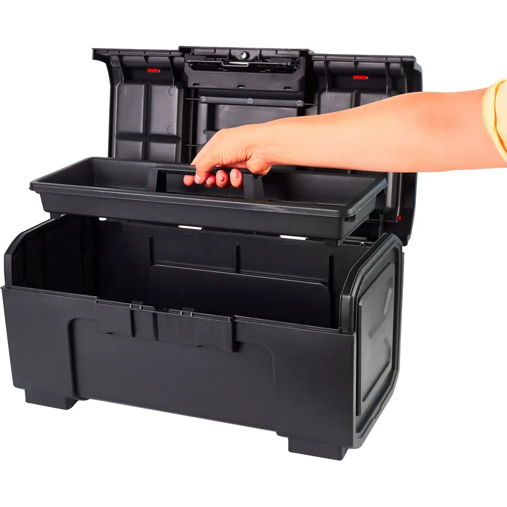 Съёмный внутренний лоток позволяет отделить инструменты и аксессуары первой необходимости от основного отсека. Крышка ящика оснащена органайзерами для хранения мелочей.