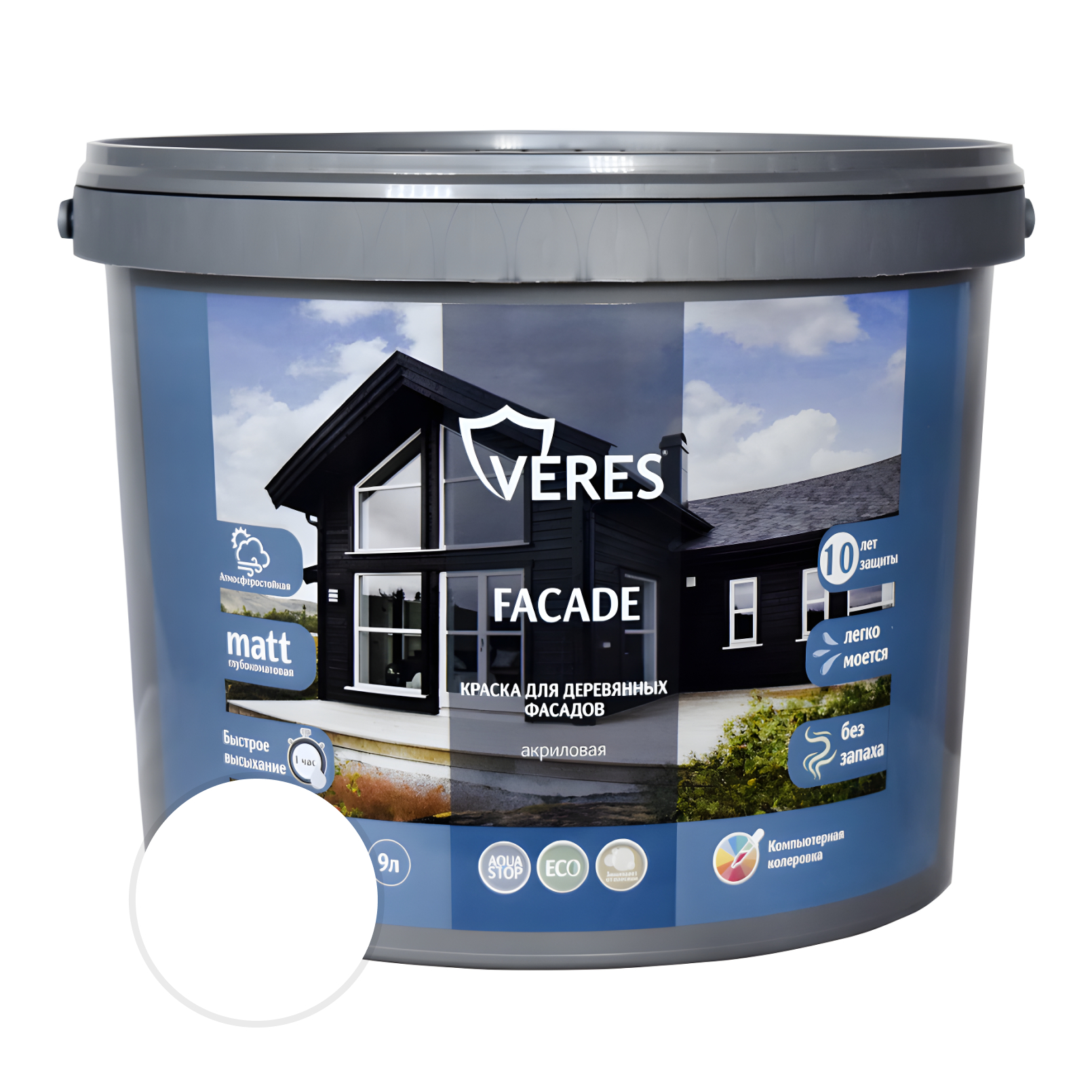 Краска Veres Facade для деревянных фасадов акриловая матовая, белый база А 2,7 л