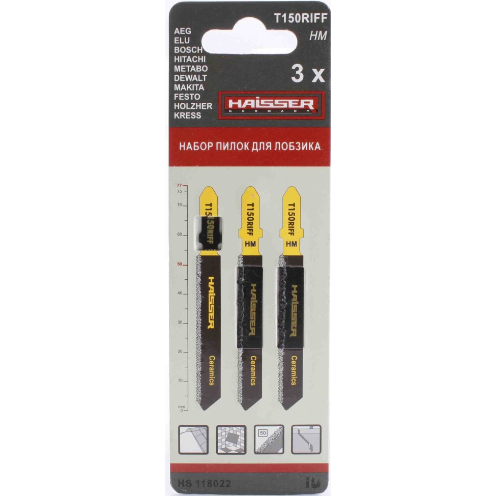 Пилка для лобзика по керамике и стеклу Haisser HS118022 Т150RIFF 77х50 мм (1 шт) и другие товары Вы можете купить в интернет-магазине ТД Мастер в Нижнем Новгороде по самым приятным ценам и оперативной доставкой во все регионы РФ.