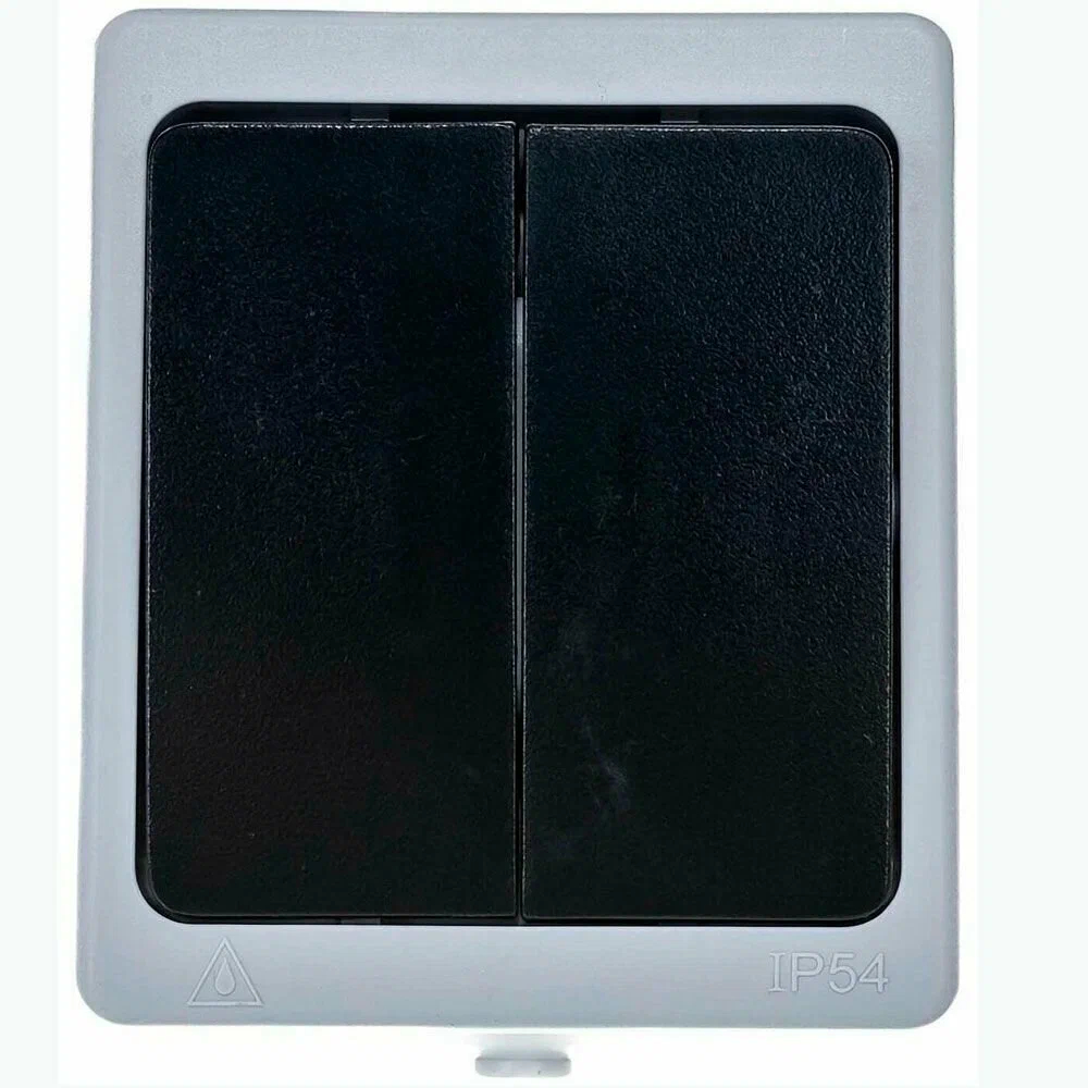Выключатель Stekker 2-клавишный открытой установки, серый/графит