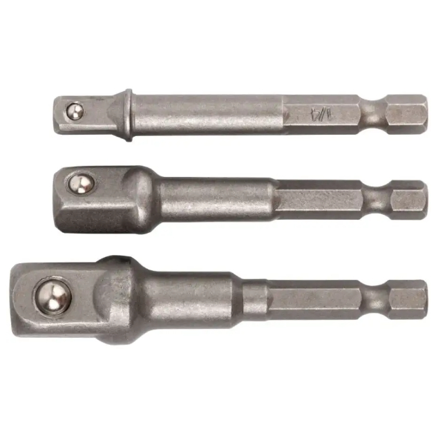 Адаптеры под головки с хвостовика U-типа под биты FIT предназначены для шуруповертов. Применяются для перехода с шестигранного типа крепления на крепление - квадрат с подпружиненным шариком. В наборе три адаптера: 1/4", 3/8", 1/2".