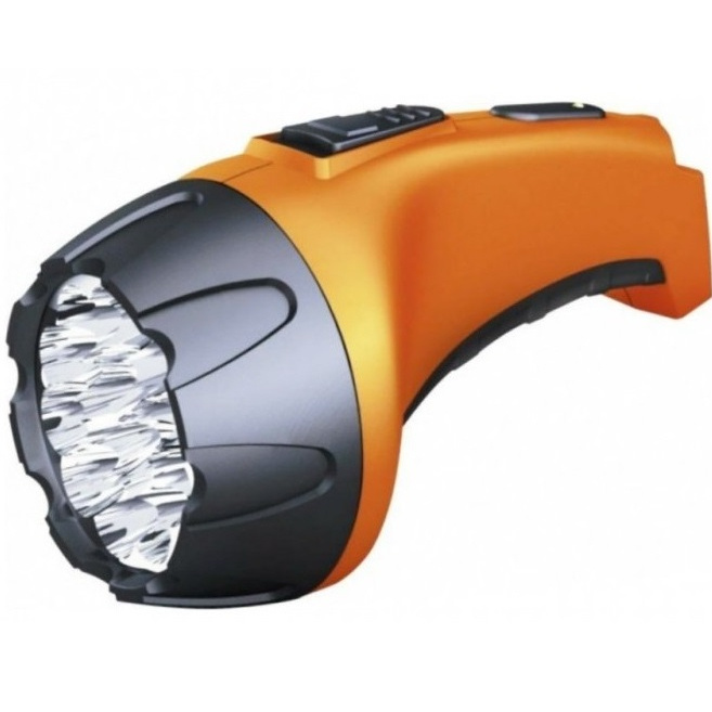 Ручной фонарь в пластиковом корпусе предназначен для бытового использования, эффективен в качестве подсветки в затемненных местах. Световой поток 25 люмен создает 7 светодиодов. Два режима работы: яркий и экономичный. Питание от встроенного аккумулятора 500 мАч. Для его зарядки предусмотрено встроенное зарядное устройство с сетевой вилкой.