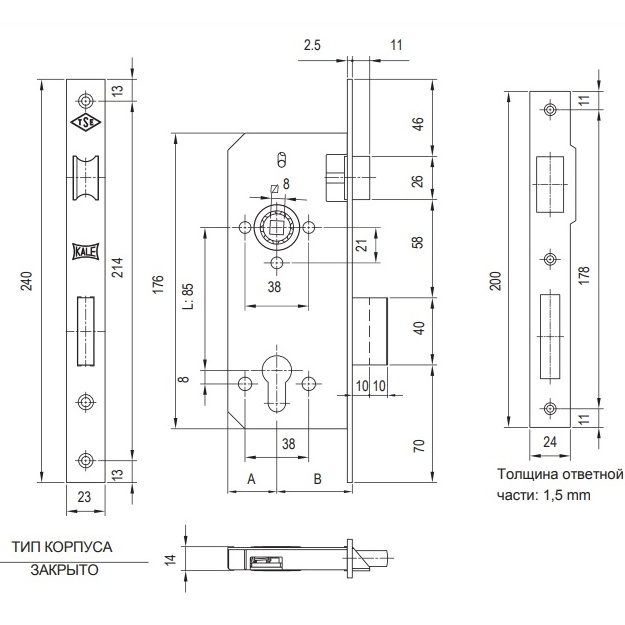 | Удаление ключевого отверстия (Backset),мм | 40 |