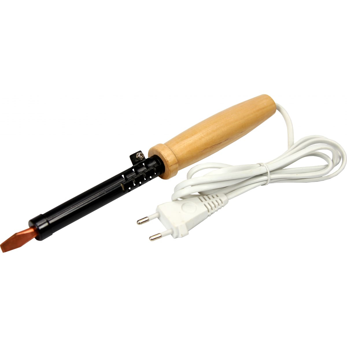 Паяльник ПД 220В 100Вт деревянная ручка ЭПСН Россия REXANT 12-0291 служит для пайки и лужения деталей и заготовок из стали и меди. Подходит для работы с оловянно-свинцовыми припоями. Нагревательный элемент представляет собой нихромовую спираль. Рабочая часть устройства выполнена из меди высокого качества. Рукоятка изготовлена из древесины, имеет удобную форму. Сетевой шнур имеет надежную двойную ПВХ изоляцию. Провод с прочной вилкой, совместимой с отечественными розетками. Паяльник соответствует II классу электрозащиты, может использоваться как в домашних условиях, так и на производственных участках.
