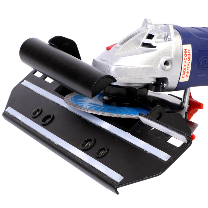 Конструкция насадки позволяет быстро установить насадку на защитный кожух УШМ и отрегулировать размер подрезки/заусовки торца плитки. Фторопластовые направляющие пластины салазок насадки защищают (не царапают) обрабатываемую поверхность плитки и позволяют легко скользить по ней.
