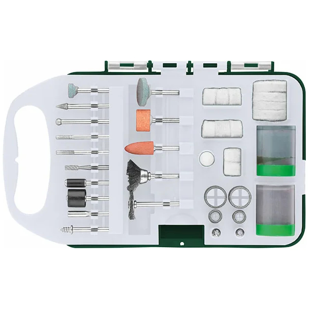 Набор FIT предназначен для обработки различных материалов с помощью гравировальной машинки. В набор входит оснастка, предоставляющая возможность обработки поверхностей различного профиля. Комплект состоит из 71 предмета и поставляется в пластиковом боксе.