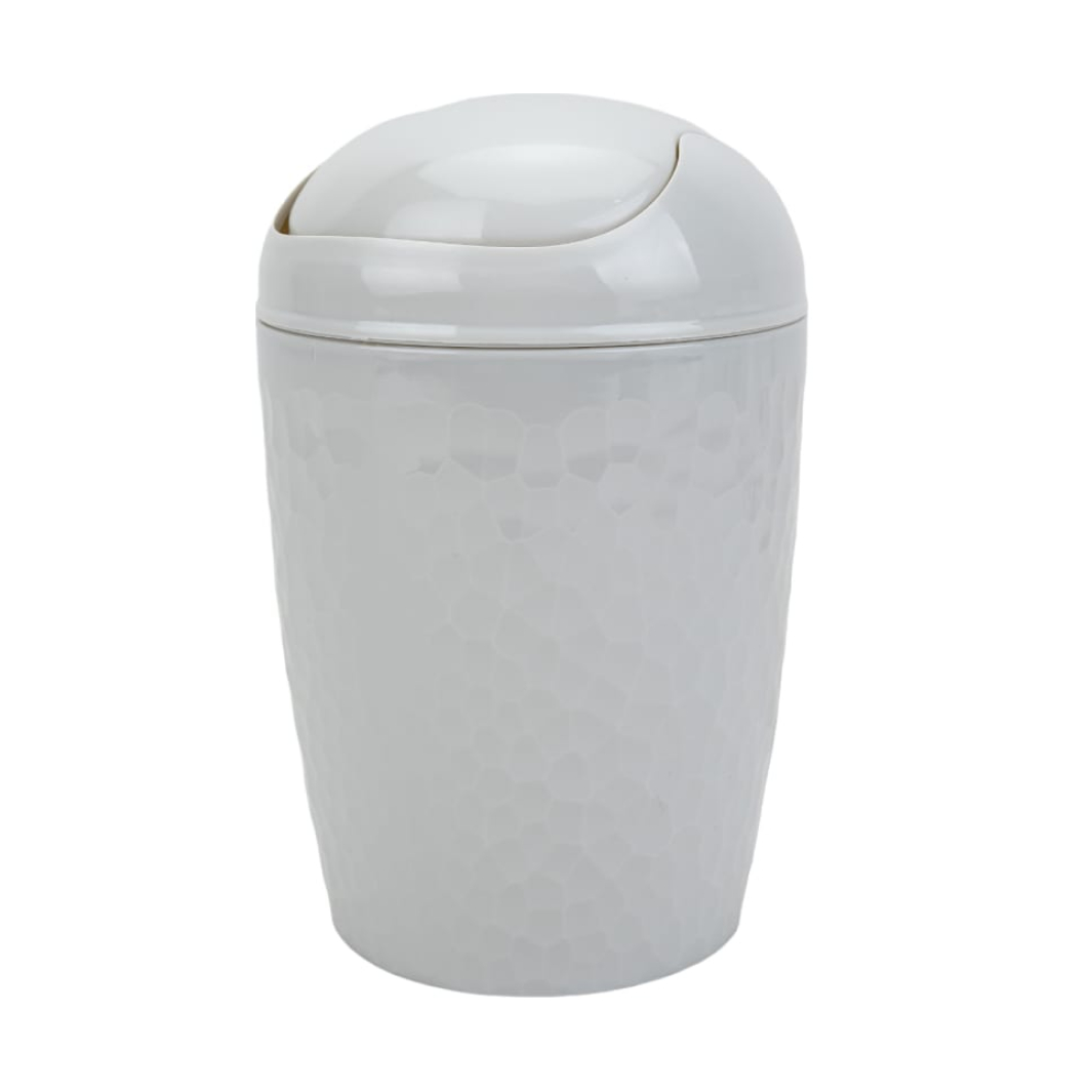 Настольный контейнер Tule удобен в использовании: вращающаяся широкая крышка позволяет с легкостью убирать в него мелкий бытовой мусор (палочки ушные, ватные диски и пр.).