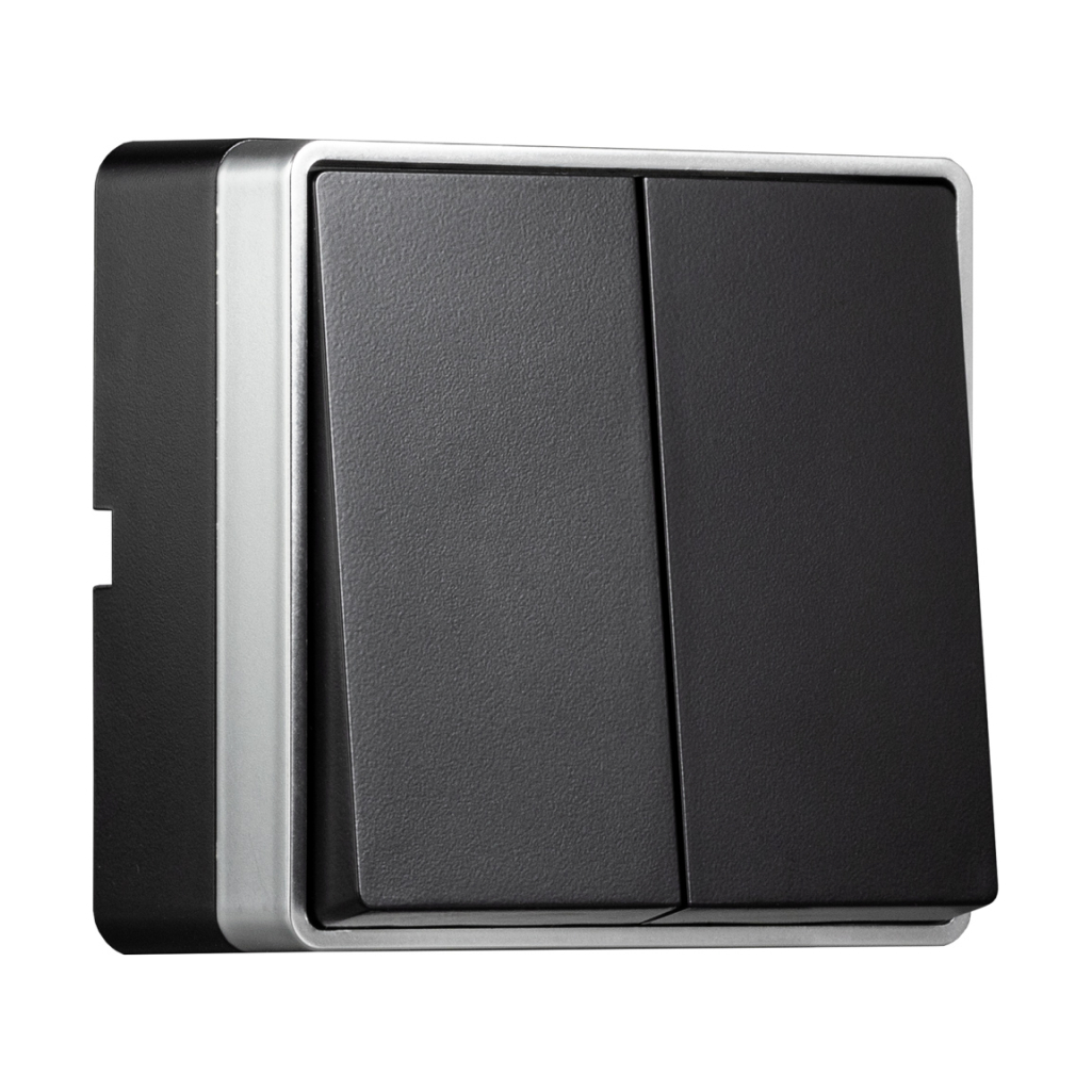 Выключатель Smartbuy Сириус 2-клавишный открытой установки, черный (SBE-07b-10-SW2-0)