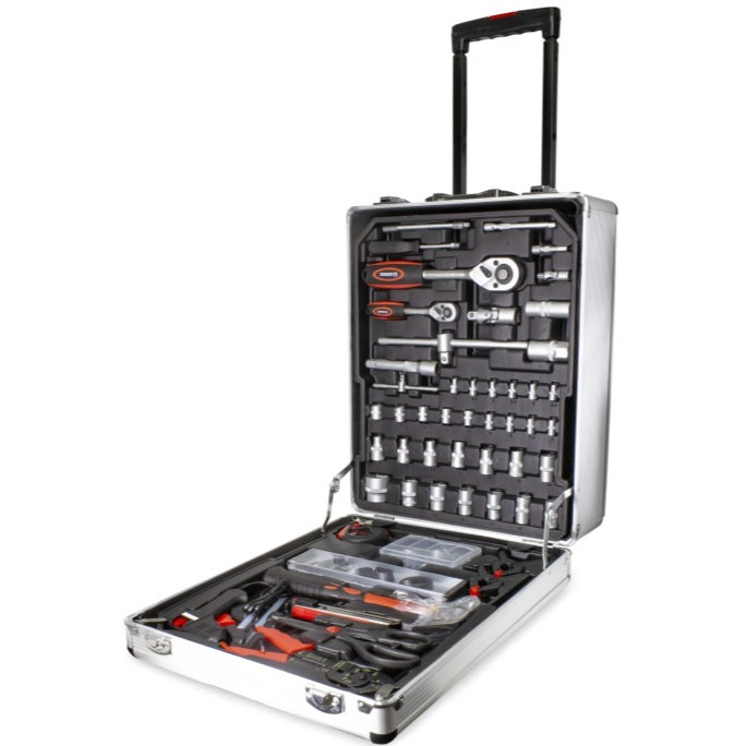 В состав набора ручного инструмента входит 4 поддона с полным набором приспособлений для выполнения разнообразных ремонтных работ. Удобная система переноски и перемещения. Оригинальная система хранения позволяет надежно фиксировать инструмент.
