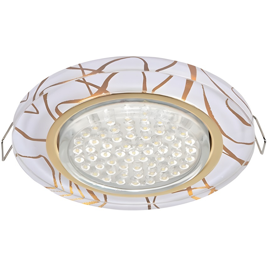 Встраиваемый светодиодный точечный светильник Ecola выполнен из высококачественного стекла. Степень защиты светильника — IP20, допускается использование во влажных помещениях. Точечный светильник идеально подойдет для установки света в подвесных и натяжных потолках, а также в различной мебели. Спот выполнен в цвете золото на белом и имеет круглую форму, он идеально впишется в любой интерьер.