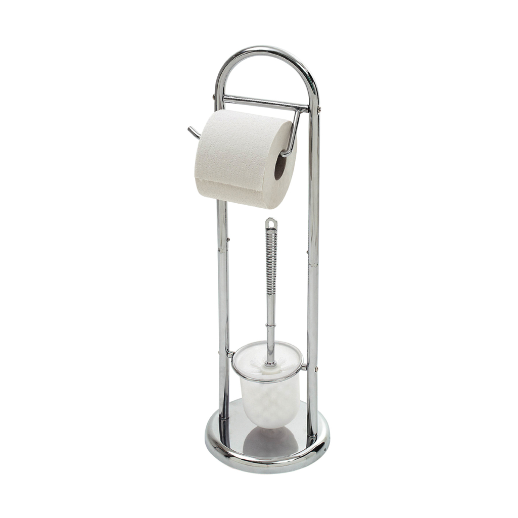 Стойка напольная с держателем для туалетной бумаги и ершиком Рыжий кот B0813 металлическая, хром