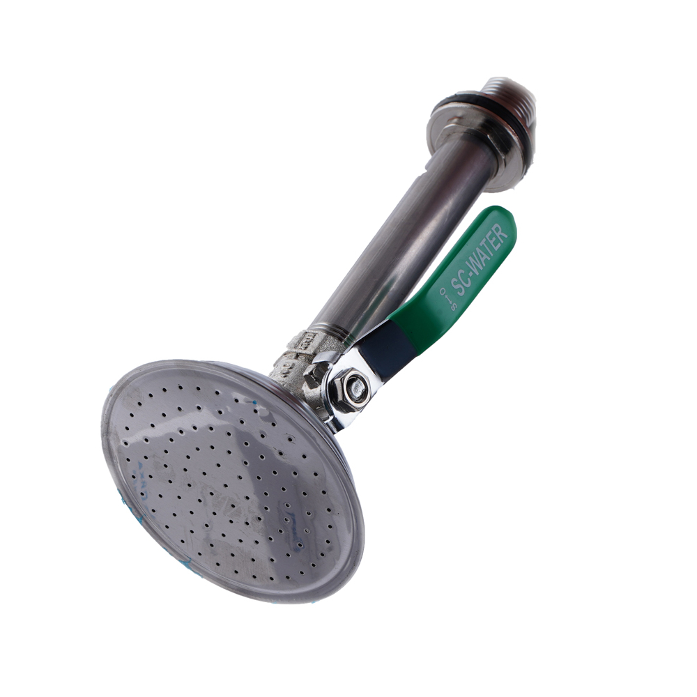 Кран шаровой с летним душем для врезки в бак. Летний душ на основе шарового запорного устройства с видом лейки и ручкой управления потоком воды. Возможно использования для садового полива.